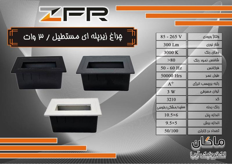مشخصات چراغ زیر پله ای توکار مستطیلی ۳ وات ZFR