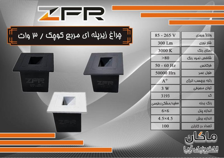 چراغ زیرپله ای ۳وات مربع ZFR افتابی