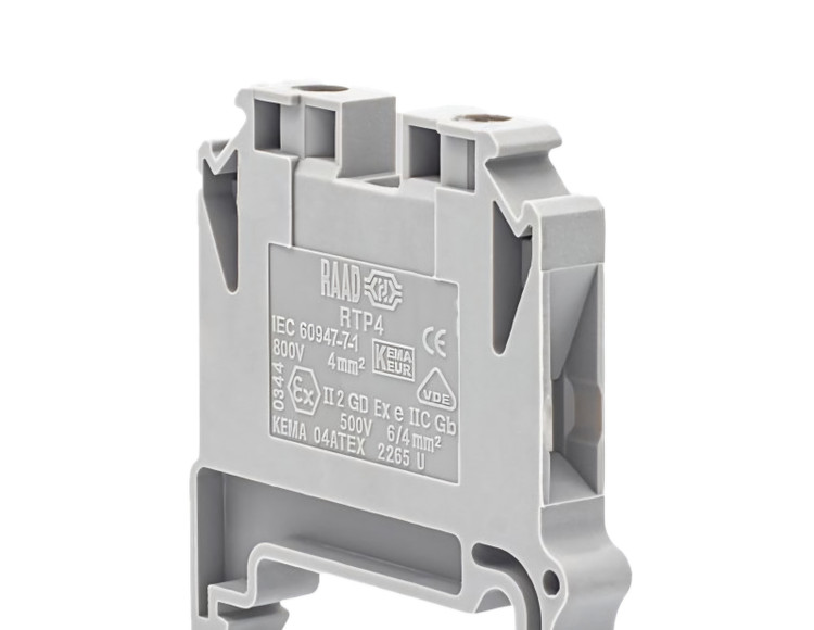 نگهداری سیمهای افشان و سخت و استخوانی را دارد. بدنه این ترمینال از مواد پلی آمید ساختهشده است. حداکثر ولتاژ عایق این ترمینال در استاندارد IEC 60947-7-1 برابر ۸۰۰ ولت و حداکثر ولتاژ لحظهای عبوری از ترمینال، بدون اینکه ترمینال آسیبی ببیند برابر ۶۰۰۰ ولت میباشد. سیم قابل اتصال استانداردی که میتوان به این ترمینال متصل کرد سیمی با سطح مقطع ۴ میلی مترمربع است اما میتوان سیمی با سطح مقطع حداکثر ۶ میلی مترمربع نیز به ترمینال وصل نمود. جریان مجاز عبوری از ترمینال ۳۲ آمپر میباشد اما میتوان برای جریانی تا حداکثر ۴۱ آمپر هم از این ترمینال استفاده کرد. درپوش انتهایی یا درپوش جداکننده این ترمینال درپوش مدل ۱۰ ,۶,EP-RTP4 رعد میباشد. همچنین میتوان از قفل ریل (بست انتهایی) مدل EB/1 یا EB/3 برای RTP4 استفاده کرد. برای موازی کردن این ترمینالها جهت گرفتن انشعاب بیشتر و یا افزایش جریان دهی میتوان از جمپر های مدل CC10-4، CC3-4 و CC2-4 رعد استفاده کرد. برای شمارهگذاری ترمینال ۴ رعد باید از شماره سیمهای سری NS6.4 استفاده کرد.