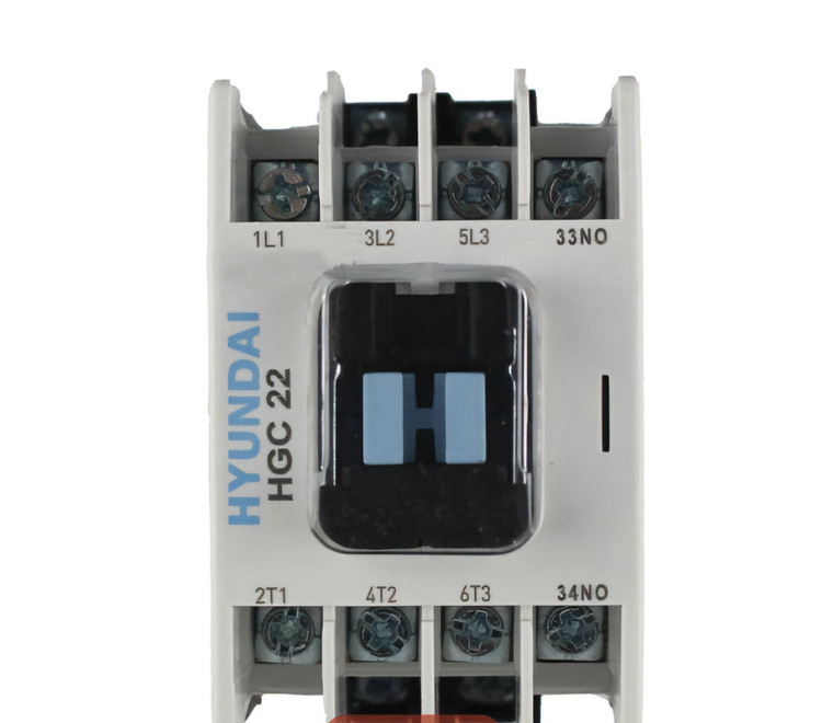ترمینالهای تحریک بوبین کنتاکتور hyundai HGC22، در دو سمت بالا و پایین آن طراحی شده، که سبب سادگی طراحی تابلو و سرعت عمل در سیمکشی میشود. بخشهای مختلف این کنتاکتور را در شکل زیر ملاحظه میکنید: