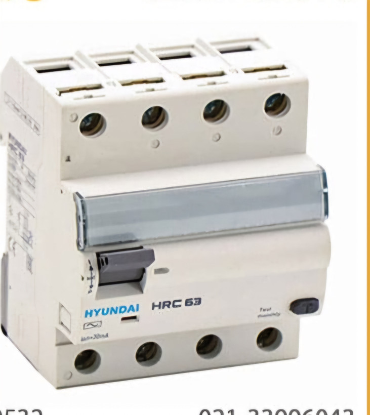 كليد محافظ جان 4 پل 63 آمپر هيونداي با رنج جريان نشتي 30mA مي باشد كه داراي سه پل جهت اتصال فاز و يك پل جهت اتصال نول ميباشد.