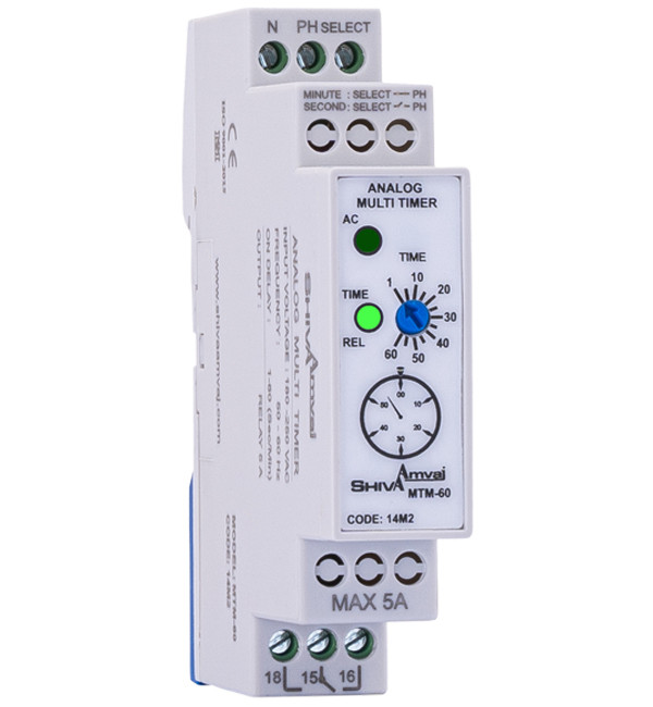 مولتی تایمر آنالوگ شیواامواج تایمر تاخیر در وصلی است که می تواند به دو صورت تایمر ثانیه یا تایمر دقیقه استفاده گردد. مراکز تجاری، صنعتی و مسکونی از جمله مکان هایی هستند که می توان از این تایمر استفاده نمود