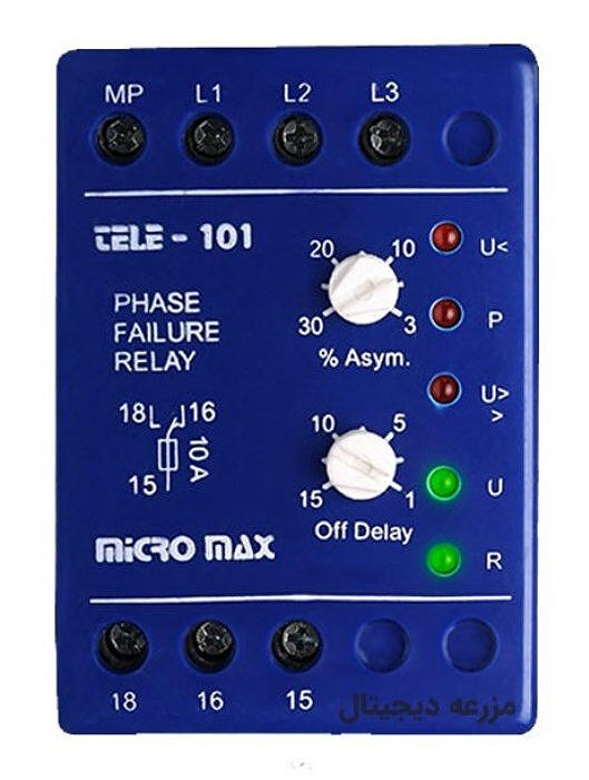 کنترل فاز تله آنالوگ سری NA میکرومکس مدل ۱۰۱NA، یک رله حفاظتی است که برای محافظت از تجهیزات الکتریکی در برابر اختلالات شبکه برق سه فاز استفاده میشود. این رله در برابر قطع فاز، جابجایی فازها، افزایش و کاهش بیش از حد مجاز ولتاژ و عدم تقارن ولتاژ فازها از تجهیزات محافظت میکند.
